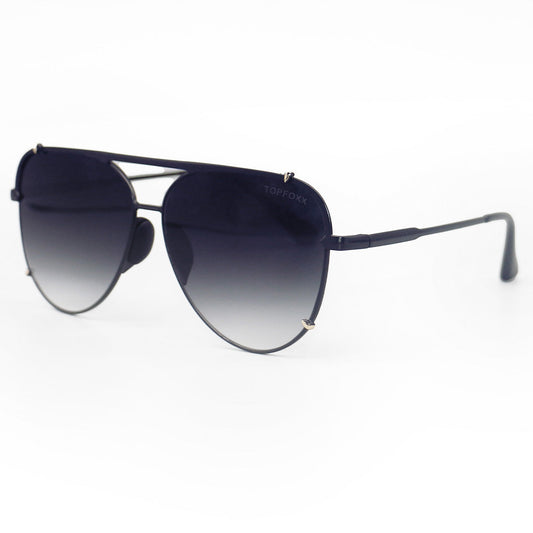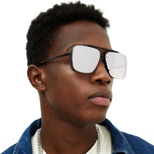 Bella - Chrome Black Oversized Squared Aviators Sunglasses