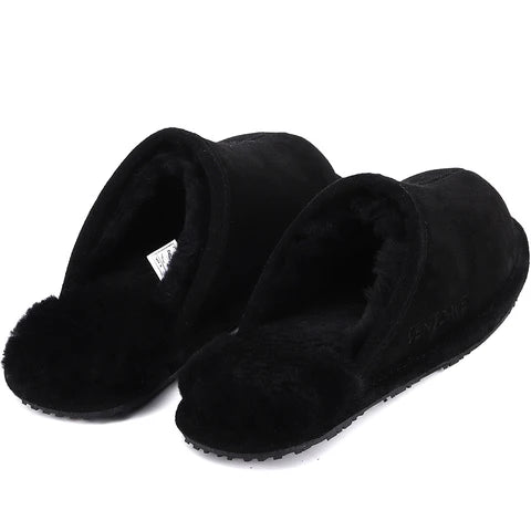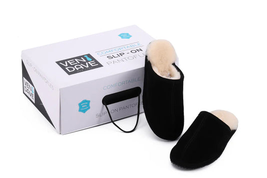 Ven Dave Leather & Beige Sheep Fur Slippers