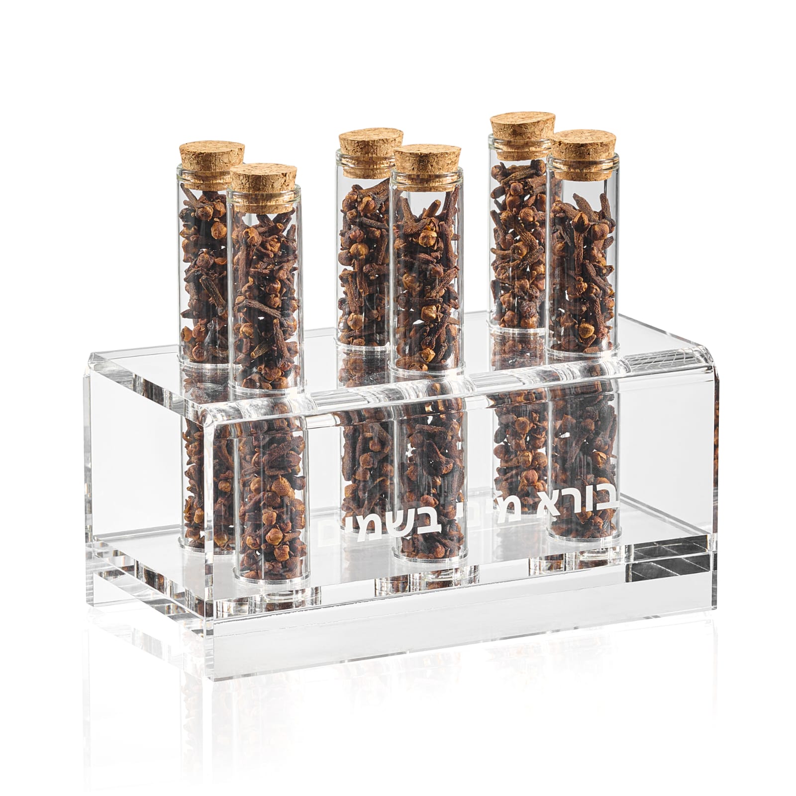Experience the beauty of Havdalah with this modern lucite set. Crafted from crystal-clear lucite, this design features sleek spice vials with cork closures, offering a seamless finish that radiates elegance. A Havdalah candle and printed card are included, making it both practical and refined. Perfect for personal use, gifting, or as a centerpiece Judaica item in the home.