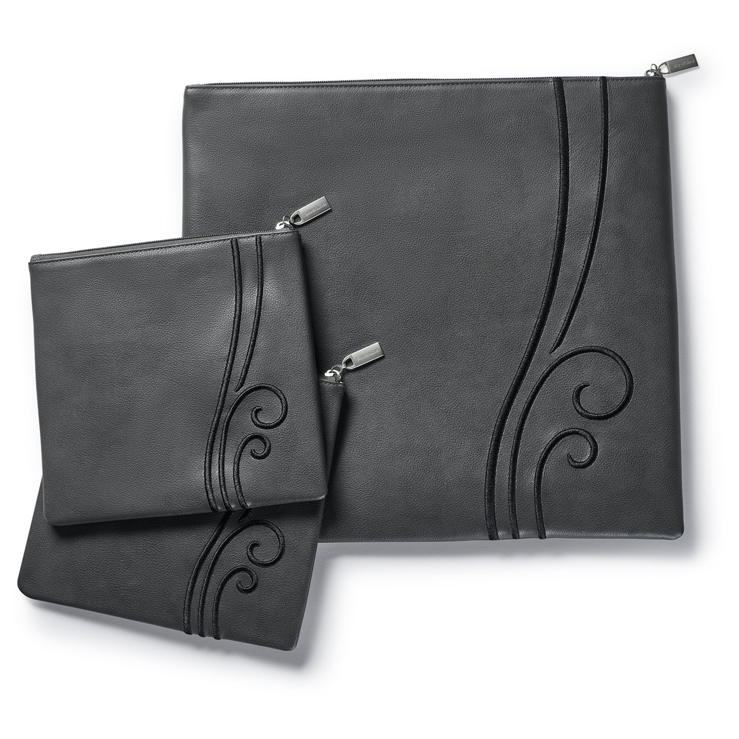 The Ravello Tallis Bag features flowing embroidered curves that create a sense of motion and refinement. The tonal charcoal and black combination delivers a sleek, understated look, offering a more subtle and sophisticated take on the signature design.
