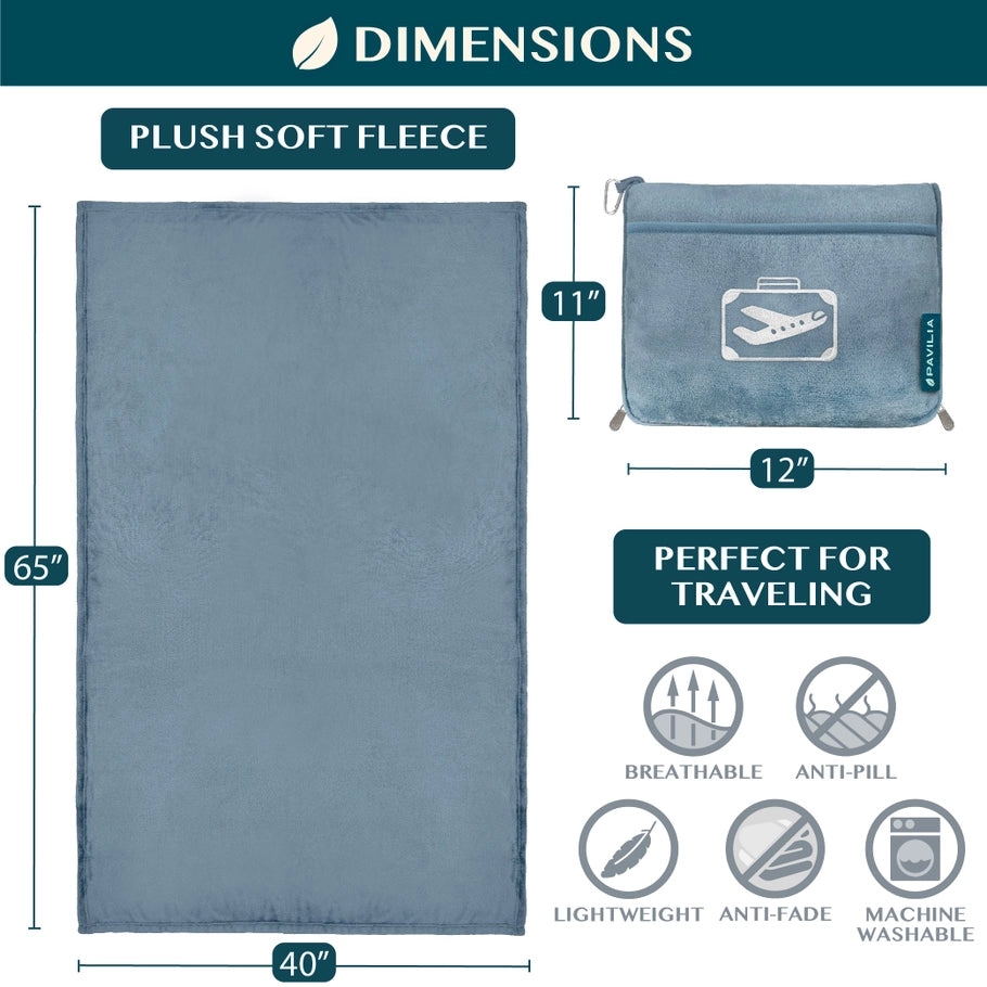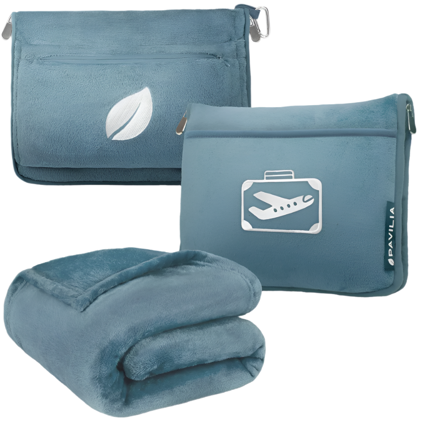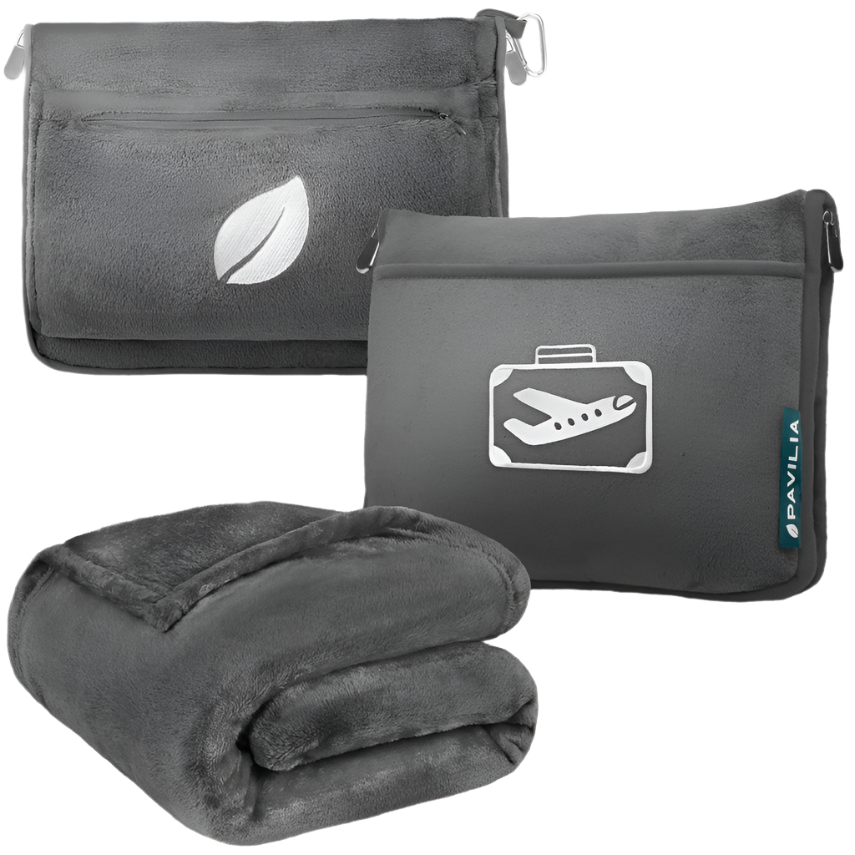 Blanket & Pillow in One: Use it as a full-sized blanket, or fold it into the plush case to create a cozy travel pillow.
